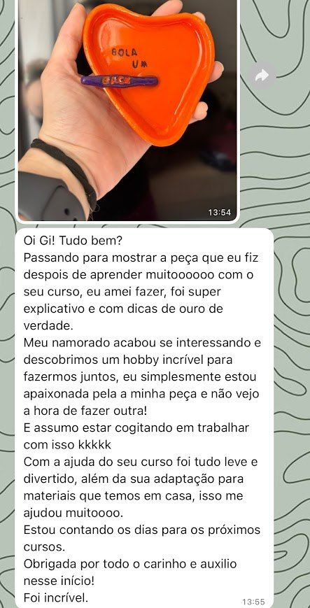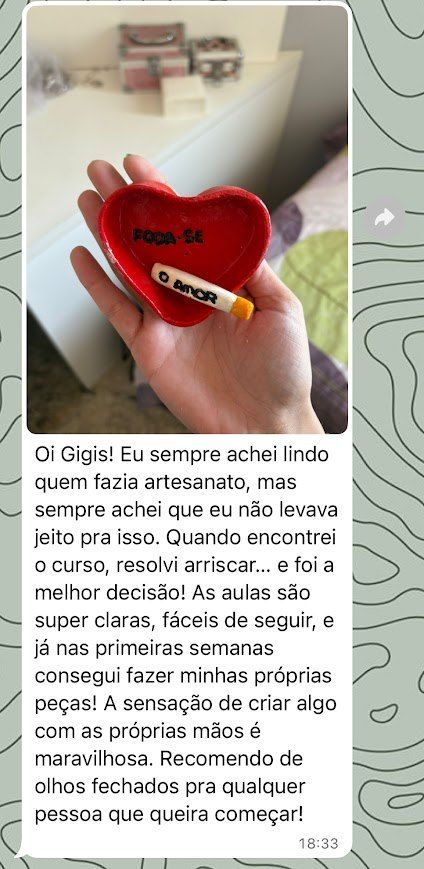 e se eu te dissesse que é sim possível fazer suas próprias peças em casa com videoaulas objetivas, mesmo sem precisar de forno, estrutura ou experiência? E ainda sem investir um alto valor em materiais?